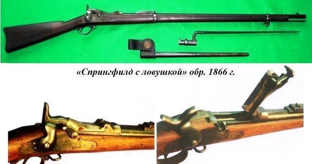 内战结束后,美国陆军正式装备了 1866式斯普林菲尔德后膛装填步枪 ,它实际上是对标准美军 1855式斯普林菲尔德前装式击发帽步枪 进行的改装升级。 随着战争结束,军队规模大幅缩减,表面上看似乎已经不需要大量武器了;然而,由战争实战经验所推动的技术发展,却要求给大幅缩编后的军队装备更加现代化的武器,最好是 弹仓式(连发)步枪 。 不过,“舍不得花钱”成了最大的问题——当局要求军方节省经费,于是将军们决定不采购新枪,而是改进仓库中仍然完好、成千上万支积满灰尘的旧枪。即便是进行较为彻底的改造,其成本也远低于生产全新武器。 斯普林菲尔德兵工厂的工程师**厄斯金·艾伦(ErskineAllin)**提出了一个方案: 将原本制式的斯普林菲尔德前装枪的枪管后膛部分上方切开,并用一块可翻转的弹簧钢盖板封住这个开口,这块盖板被称为“ 陷阱门 ”(Trapdoor)「也可以翻译成“活板门”」。 当“陷阱门”抬起时,可以将一发 边缘发火弹 从这个开口装入枪管;然后放下“陷阱门”将其关闭,而击针就安装在这块盖板上,与弹壳边缘相接触。 扣动扳机时,已经待击的击锤击打击针,引发击发,从而完成射击。